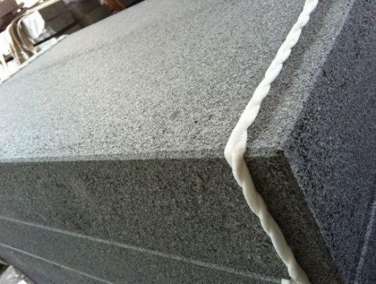Herkunft: Vietnam, allseits geflammt, Längskanten 7mm/45°, sonst 4mm/45° gefast, anthrazit